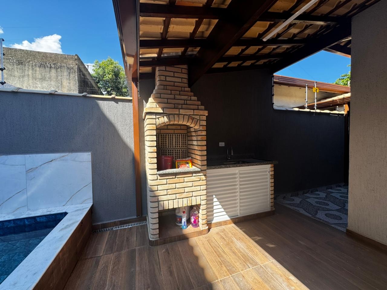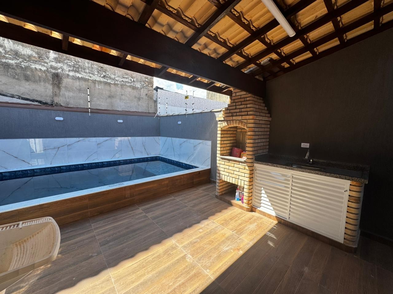 Casa no Balneario Gaivota em Itanhaém, no litoral sul de São Paulo, lado praia a 500 metros do mar, em rua calçada. Imóvel com 140m² de área total e 71m². Possui area gourmet com churrasqueira, area de serviço, piscina e vaga para 02 automoveis.