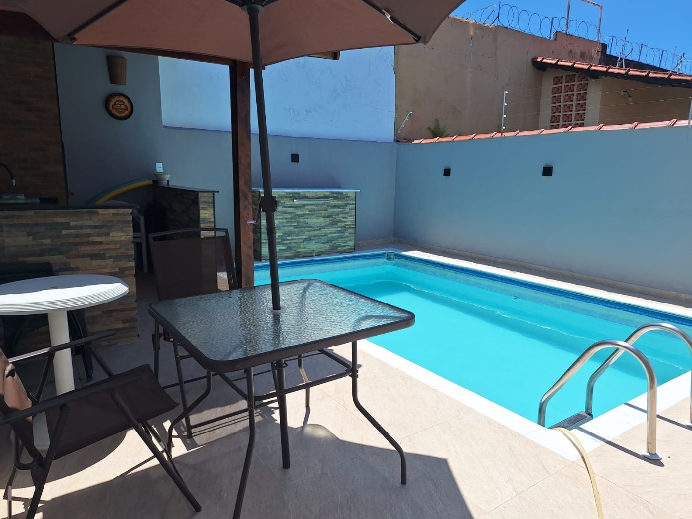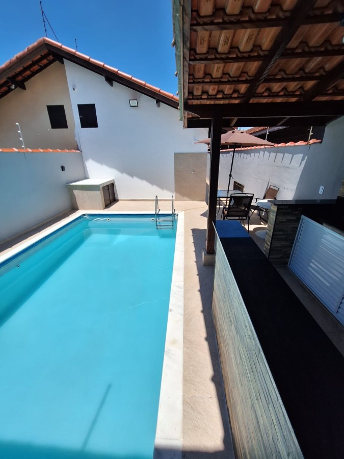 Casa no bairro Itaguai em Mongaguá, no litoral sul de São Paulo, lado lado praia a 90 metros do mar, em rua calçada. Imóvel com 192m² de área total sendo 96m² de área util. Possui area gourmet com churrasqueira, piscina, area de serviço e vaga para 02 automoveis.