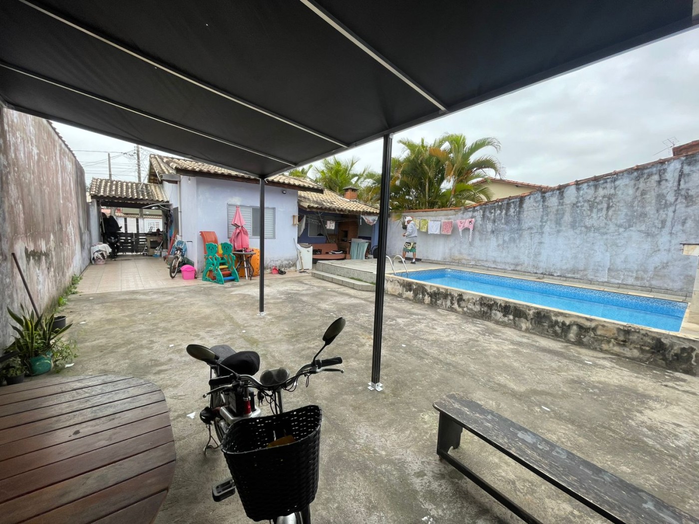 Chácara no bairro Tupy em Itanhaem, no litoral sul de São Paulo, lado praia à 700 metros do mar, em rua de terra. Imóvel com 250m² de área total sendo 65m² de area construida. Possui area gourmet com churrasqueira, piscina e vaga para 03 automoveis.
