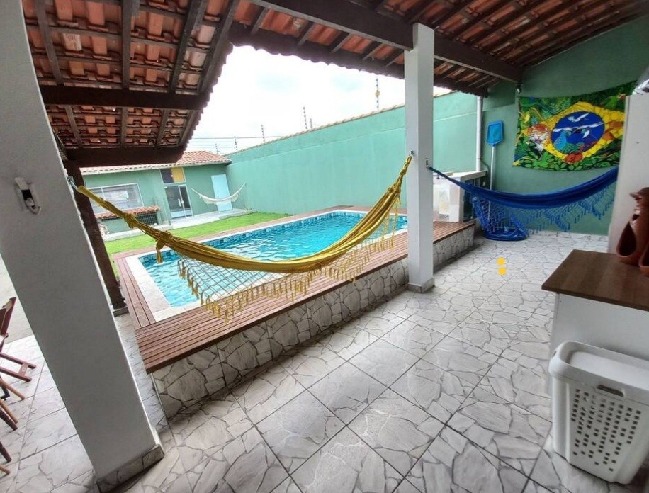 Casa no Nova Itanhaém em Itanhaém, no litoral sul de São Paulo, lado serra a 800 metros do mar, em rua calçada. Imóvel com 250m² de área total, sendo 67m² de área construída. Possui área gourmet com churrasqueira, area de serviço, jardim, edicula e vaga para 08 automoveis.