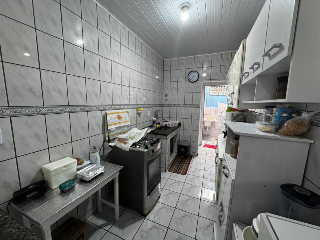 Casa no Vila Caiçara em Praia Grande, no litoral sul de São Paulo, lado praia a 200 metros do mar, em rua calçada. Imóvel com 75m² de área total e 56m². Possui area gourmet com churrasqueira, area de serviço e vaga para 02 automoveis coberta.