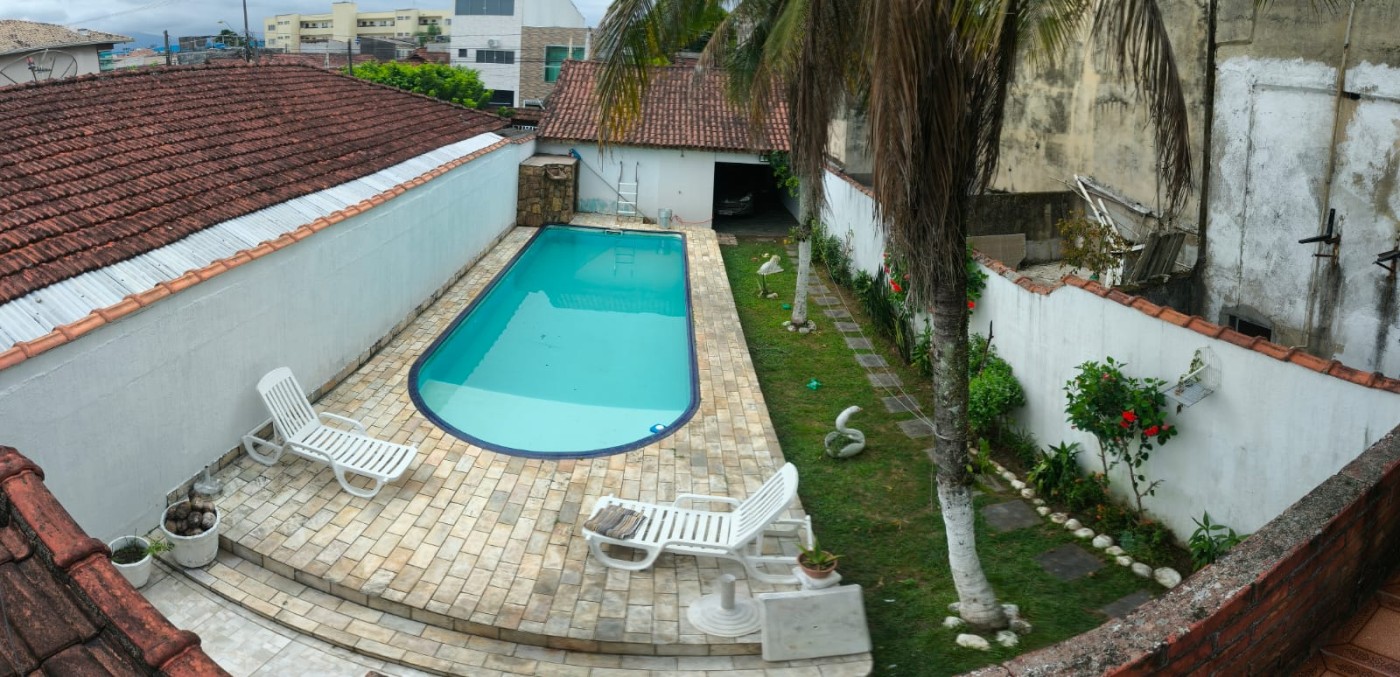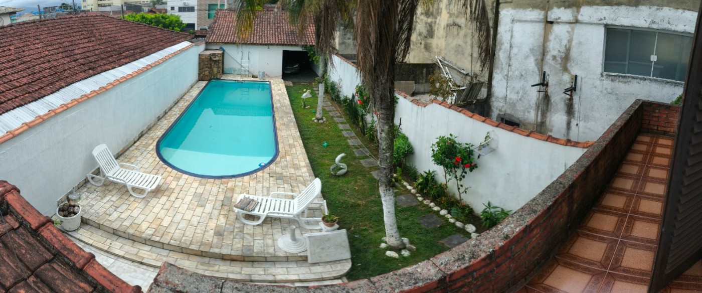 Casa no bairro Ocian na Praia Grande no litoral sul de São Paulo, lado praia a 800 metros do mar, em rua calçada. Imóvel com 400m² de área total, sendo 143m² de área construída. Possui area gourmet com churrasqueira, piscina, jardim e vaga para 05 automoveis.
