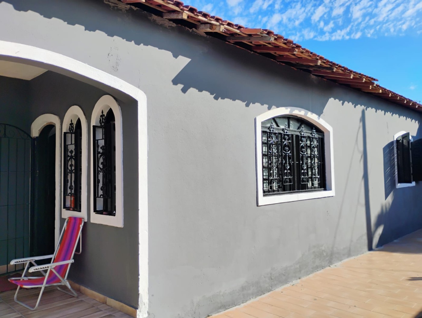 Casa no Balneário Itaguai em Mongaguá, no litoral sul de São Paulo, localizado lado serra à 250m da rodovia e à 670m do mar, em rua calçada. Imóvel com 162m² de área total, sendo 128m² de área construída. Possui área de serviço, churrasqueira e vaga para 01 automóvel.