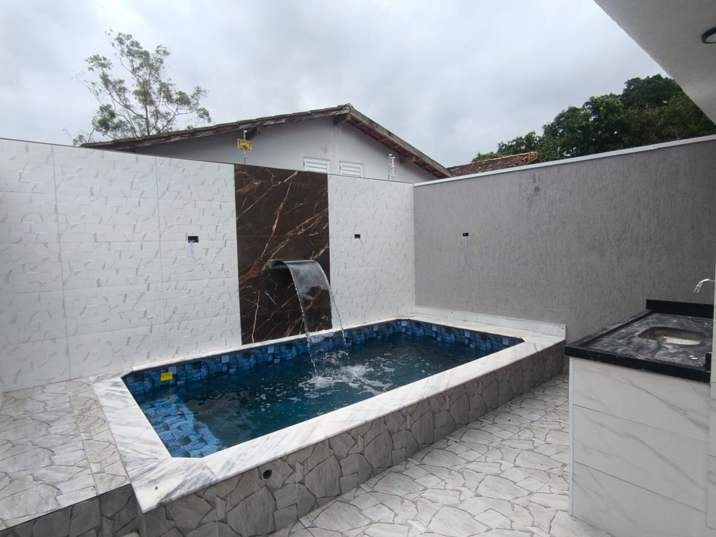 Casa no Nossa Senhora do Sion em Itanhaém, no litoral sul de São Paulo, lado serra a 300 metros da rodovia, em rua calçada. Imóvel com 125m² de área total e 58m². Possui area gourmet com churrasqueira, jardim, area de serviço e vagas cobertas para 02 automoveis.