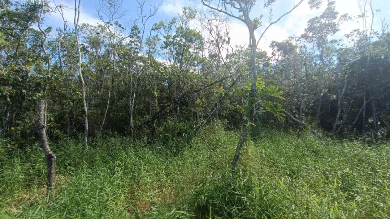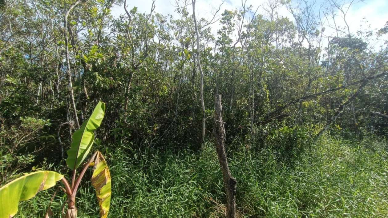 Terreno de chácara no Chácaras Gloria em Itanhaém, litoral sul de São Paulo, localizado lado serra à 700m da rodovia, em rua de terra. Terreno medindo 1.800 m² de área total.