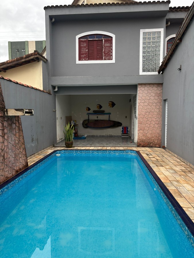 Casa no Bairro Jardim Maria Luiza em Mongagua, no litoral sul de São Paulo, lado praia à 150 metros do mar, em rua calçada. Imóvel com 250 m² de área total sendo 166m² de area util. Possui area gourmet com churrasqueira, piscina e vaga para 04 automóveis.