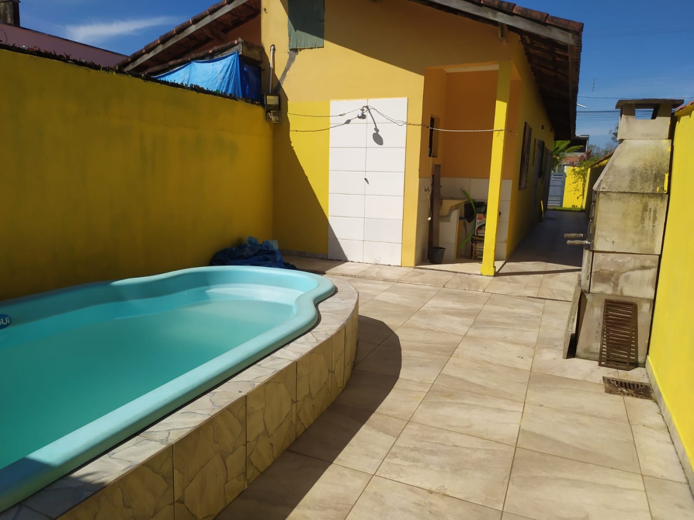 Casa no bairro Suarão em Itanhaém, no litoral sul de São Paulo, lado serra a 560 metros da rodovia, em rua calçada. Imóvel com 150m² de área total, sendo 53m² de área construída. Possui piscina e vaga para 02 automoveis.