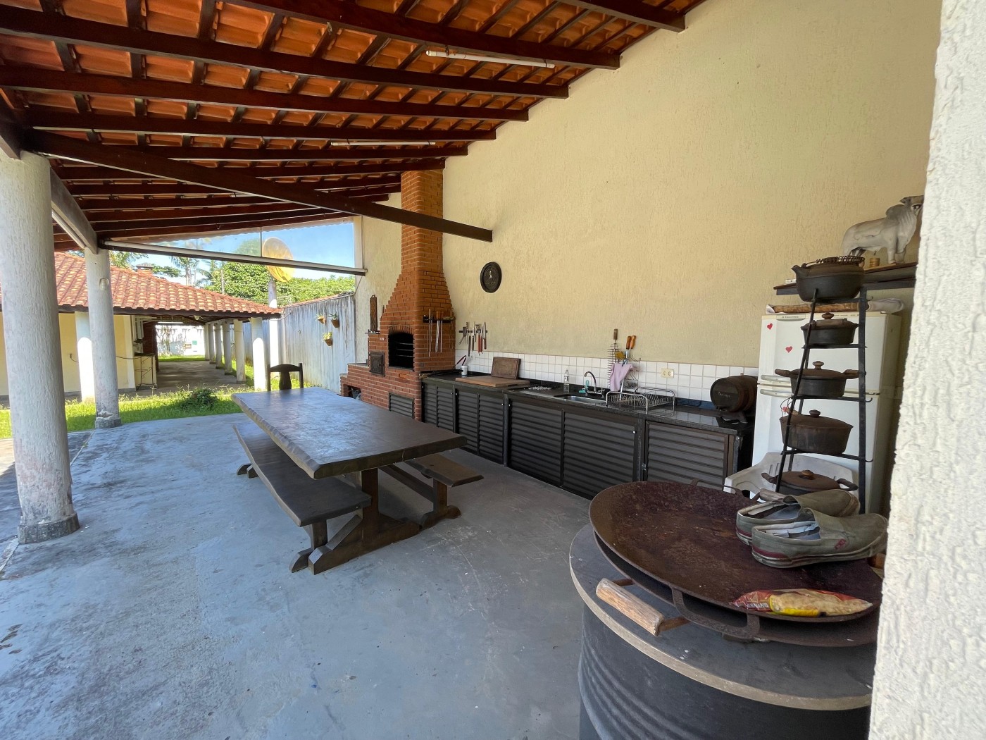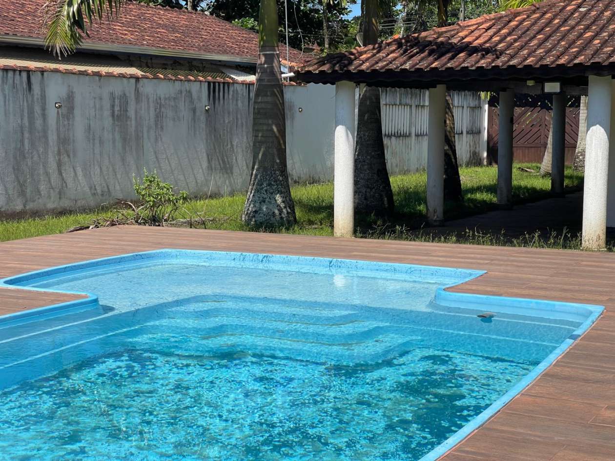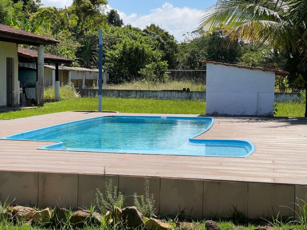 Chácara no Chacaras Gloria em Itanhaem, no litoral sul de São Paulo, lado serra à 100 metros da rodovia, em rua de terra. Imóvel com 1680m² de área total. Possui area gourmet com churrasqueira,piscina, varanda e vaga para 10 automoveis.