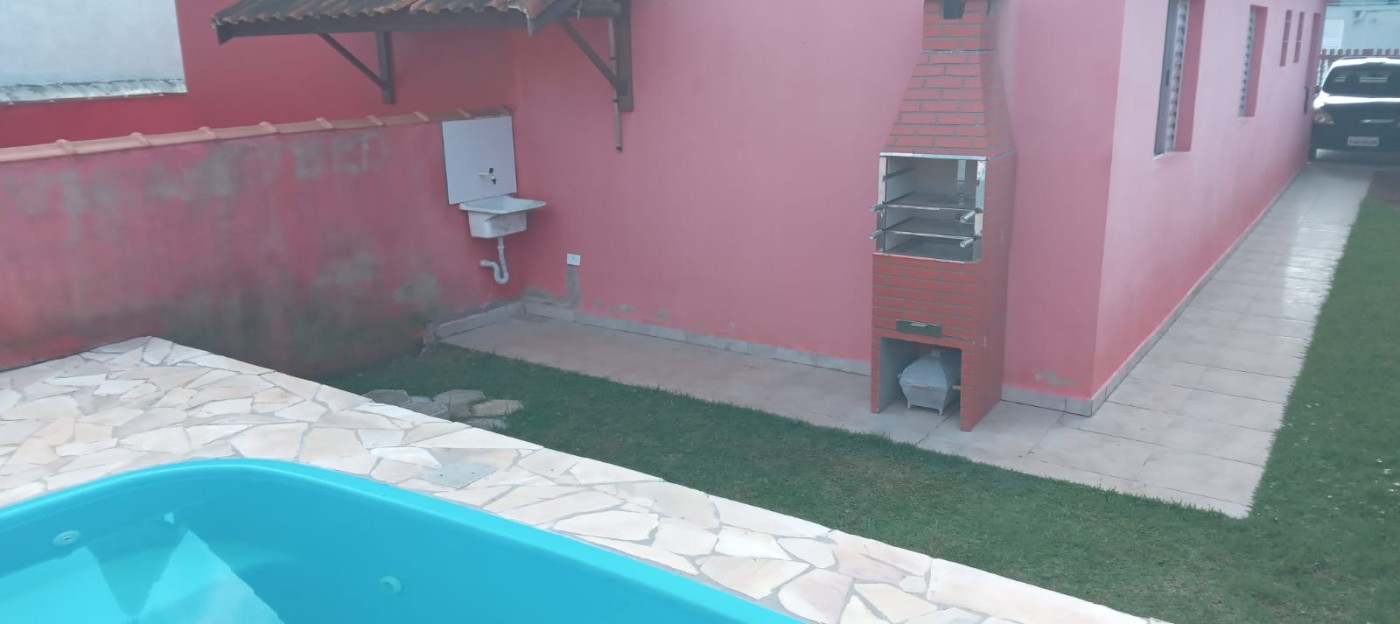 Casa no bairro Jardim Regina em Itanhaém, no litoral sul de São Paulo, lado praia à 1300 metros do mar, em rua calçada. Imóvel com 165m² de área total, sendo 75m² de area construída. Possui área gourmet com churrasqueira, piscina, area de serviço e vaga para 02 automoveis.