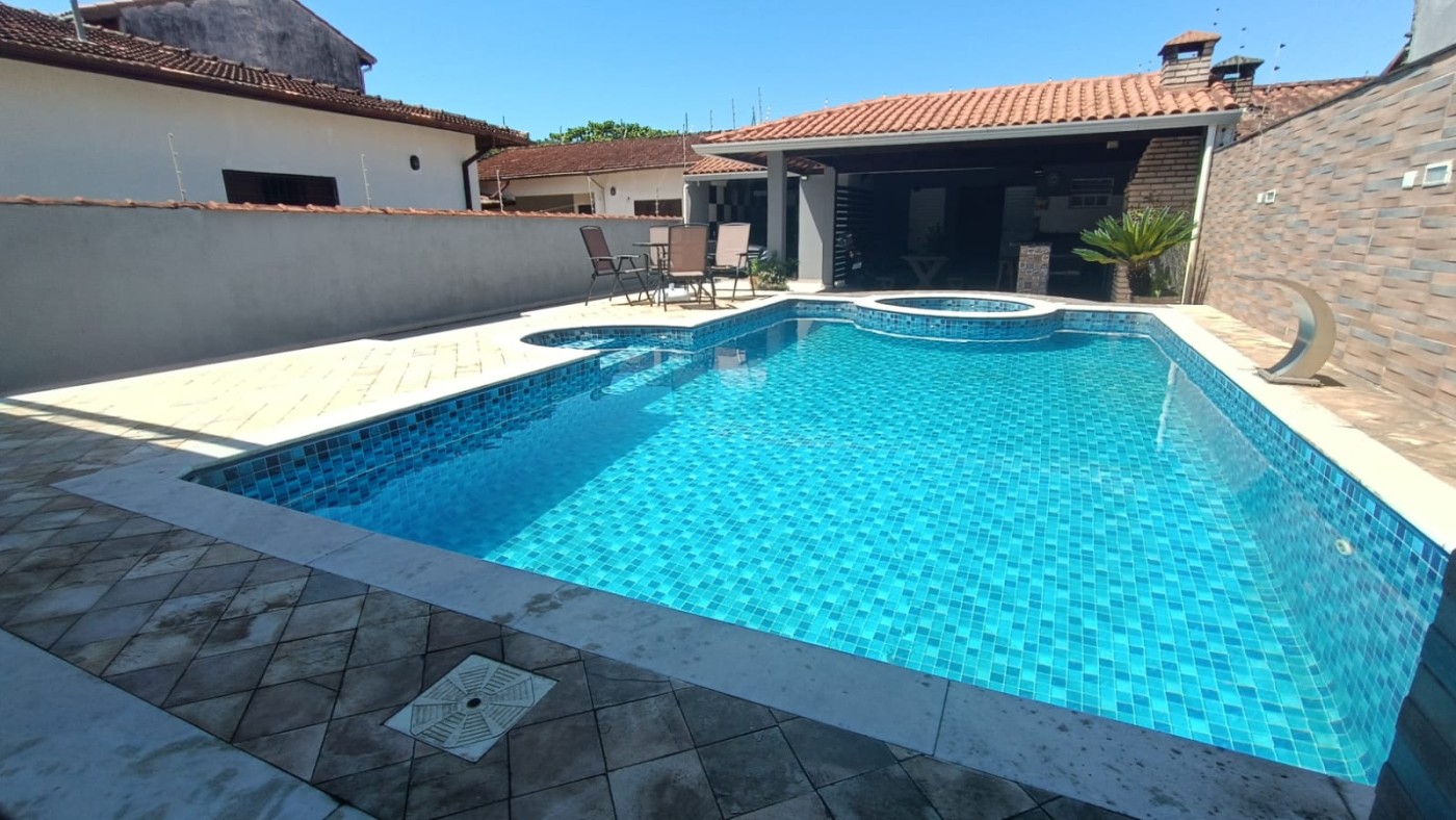 Casa no Praia dos Sonhos em Itanhaém, no litoral sul de São Paulo, lado praia a 100 metros do mar, em rua calçada. Imóvel com 400m² de área total e 250m². Possui area gourmet com churrasqueira, area de serviço, edicula, lago e vaga para 10 automovel.
