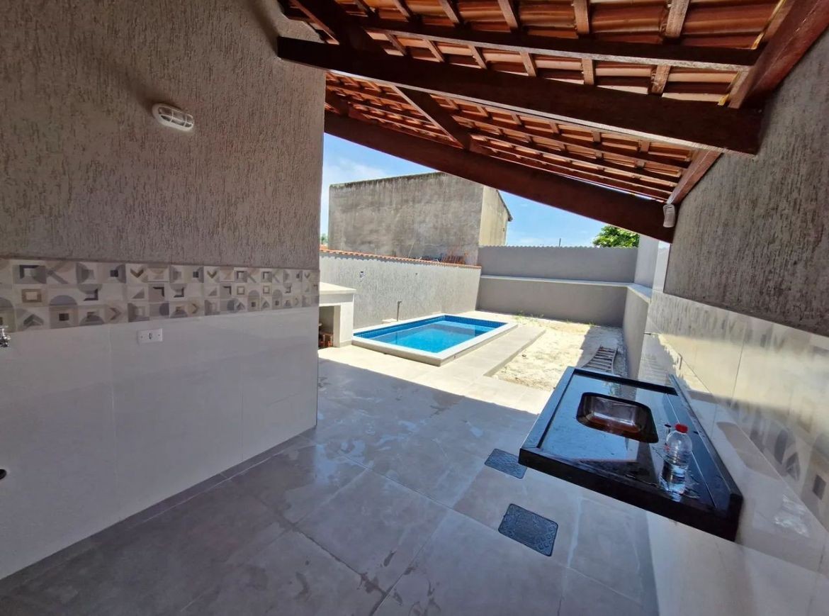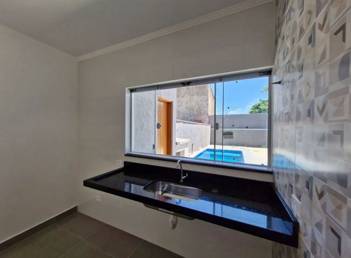 Casa no Bopiranga em Itanhaém, no litoral sul de São Paulo, lado praia a 1100 metros do mar, em rua calçada. Imóvel com 198m² de área total e 76m². Possui area gourmet com churrasqueira, area de serviço e vaga para 02 automoveis.