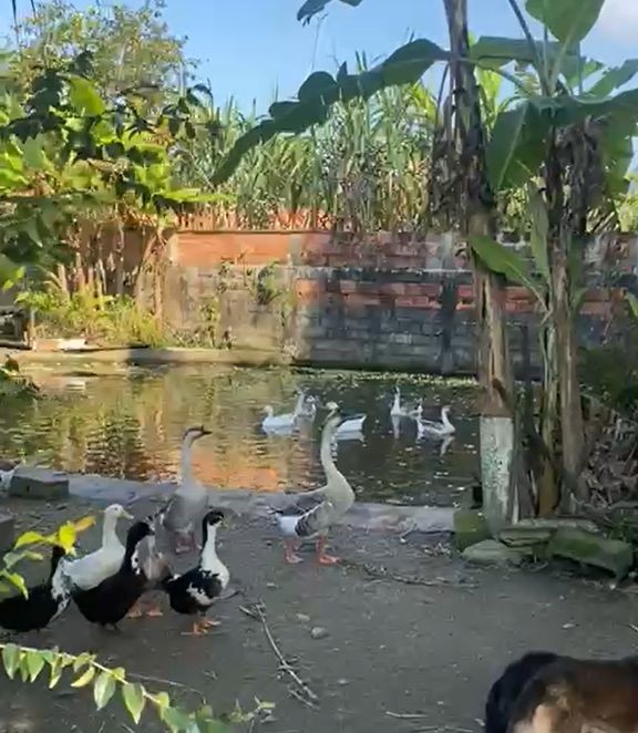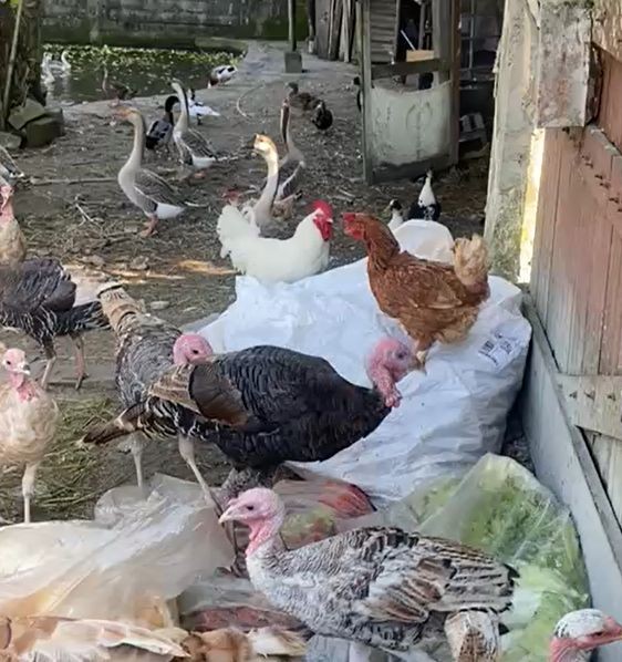 Presença de gansos, galinhas e outros